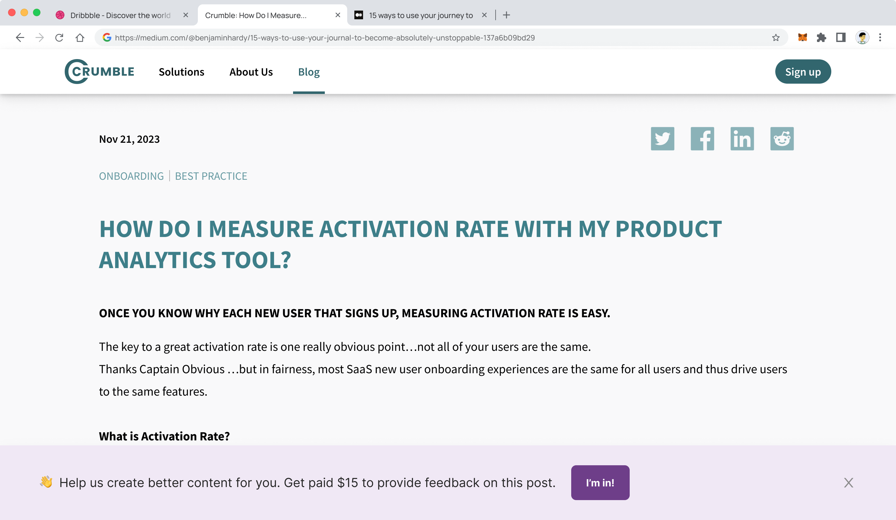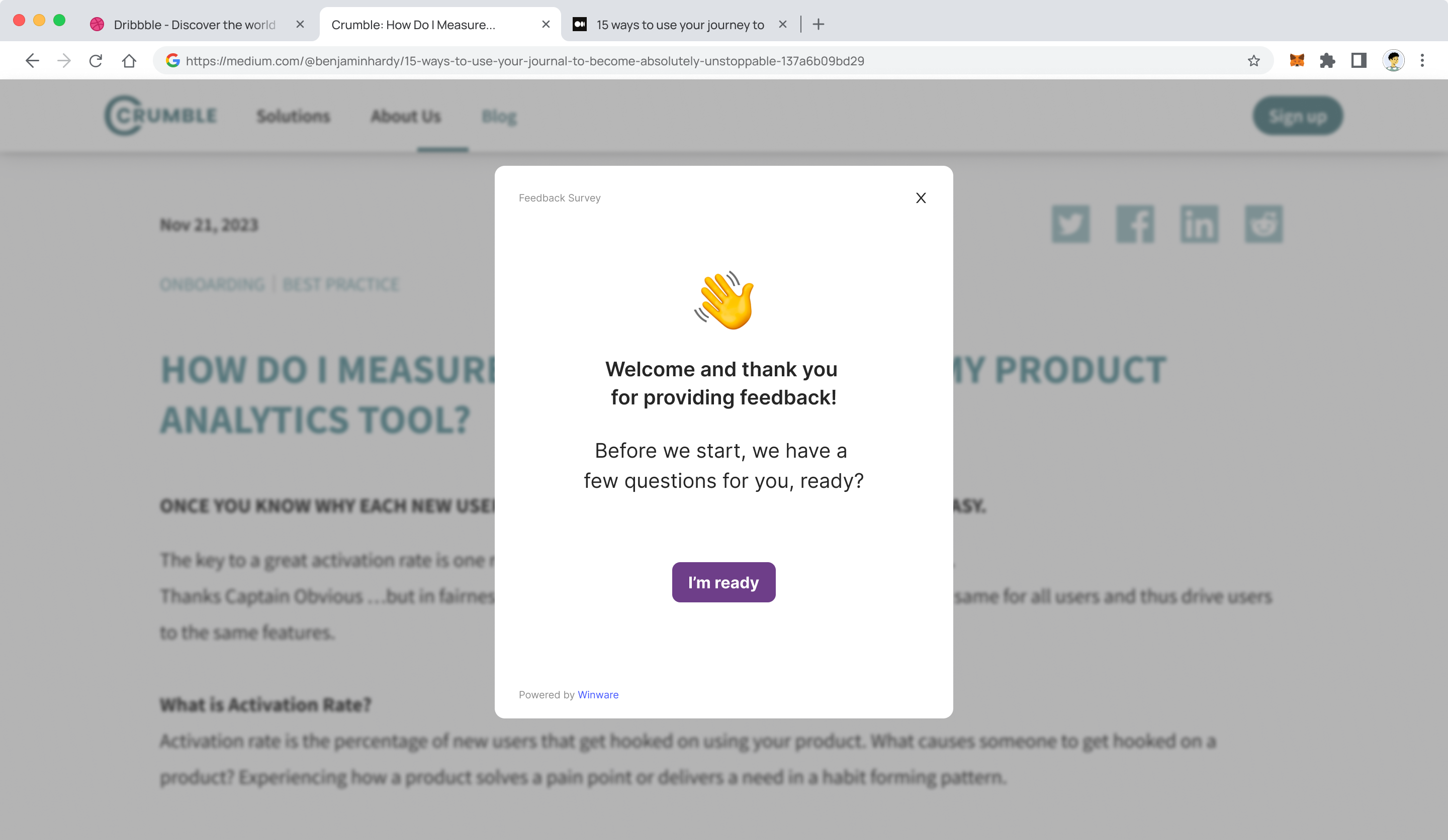 Add Winware to your site and you can automatically add a feedback request button to your content. You’ll get the option of 3 different types of CTAs:
